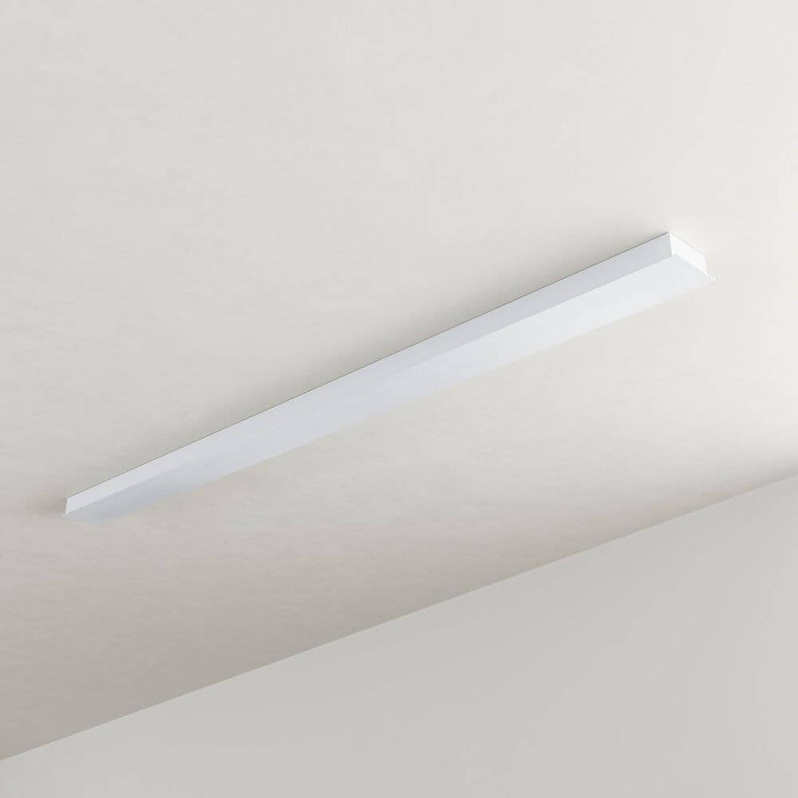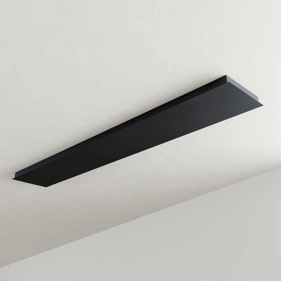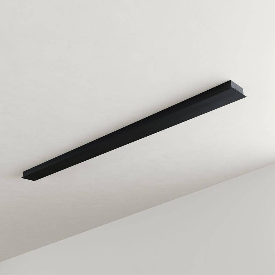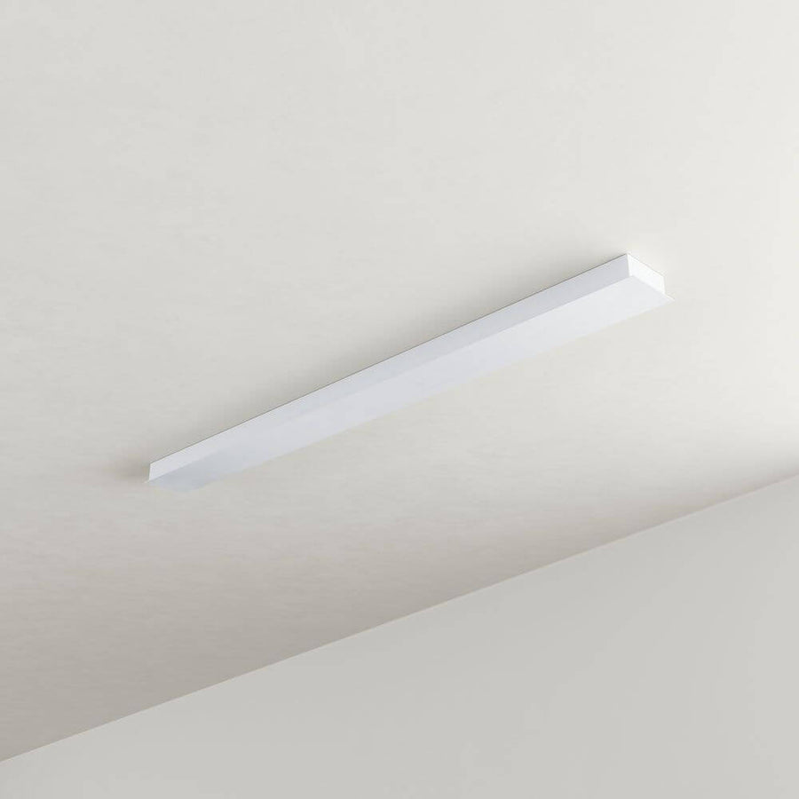 Le cache-plafond s.luce en forme de barre rectangulaire (sans perçage) est conçu pour créer des suspensions multiples personnalisées, notamment au-dessus d’une table à manger. Son design épuré en métal de haute qualité offre une grande liberté de positionnement des luminaires.