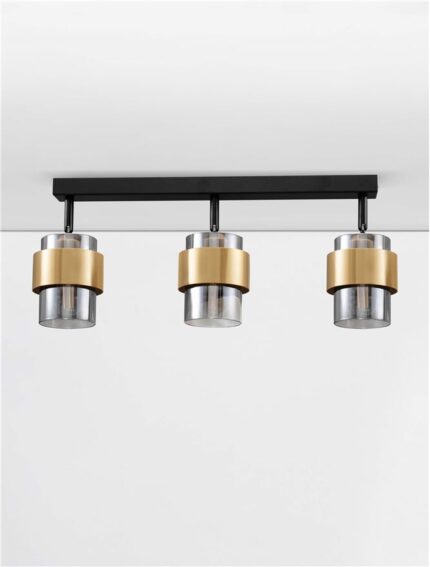 SIANNA Deckenleuchte 3-flammig Ø 37 cm – Schwarz, Rauchglas & Messingrin