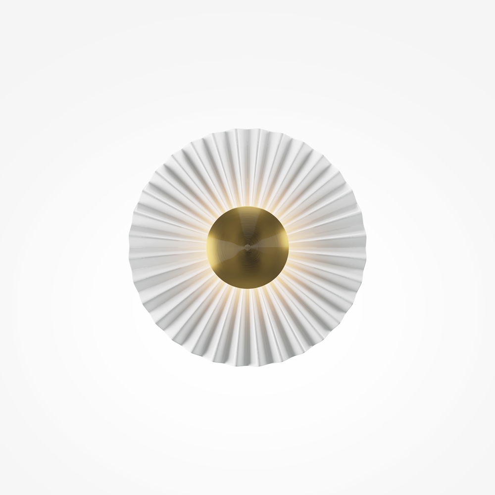 Die Wandleuchte FIORE von MAYTONI besticht durch ihr florales, von der Natur inspiriertes Design. Ihr rundes, fein strukturiertes Gehäuse erinnert an die Form einer Blüte, während das messingfarbene Zentrum dem Leuchtkörper einen edlen Akzent verleiht.