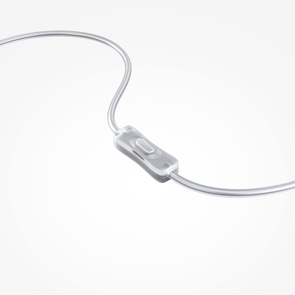 Als leichter Kontrast schwebt darüber eine weiß satinierte Glaskugel (Ø 150 mm). Sie sorgt für ein sanftes, blendarmes Licht, ideal für entspannte Abende oder als stilvoller Lichtakzent im Alltag. Die Leuchte arbeitet mit einem G9 LED-Leuchtmittel bis 9 W; ein Ein-/Ausschalter am Kabel macht die Bedienung einfach und komfortabel.