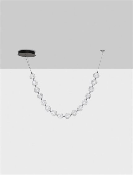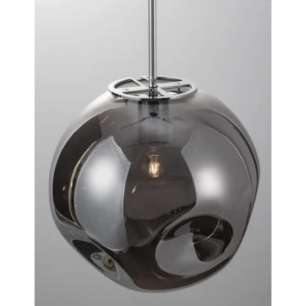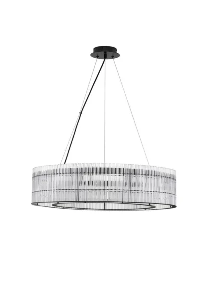 Die Barok Pendelleuchte 7-flammig vereint klare, geometrische Formen mit moderner Eleganz. Zwei übereinanderliegende Ringe, bestückt mit massiven Glasstäben, schaffen durch