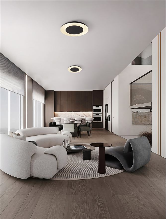 Die EPOS Deckenleuchte von Nova Luce steht für klare Linien, moderne Zurückhaltung und technische Flexibilität. Mit ihrem großzügigen Durchmesser von 60 cm und einer flachen Bauhöhe von nur 6 cm wirkt sie präsent, ohne den Raum zu dominieren – ideal für Wohn- und Schlafräume, Flure oder moderne Büros.