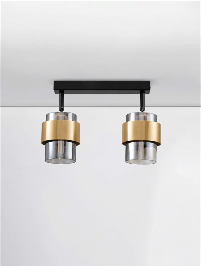 Nova Luce SIANNA Deckenleuchte 2-flammig – Schwarz & Gold, verstellbare Spots, retro-modernes Design