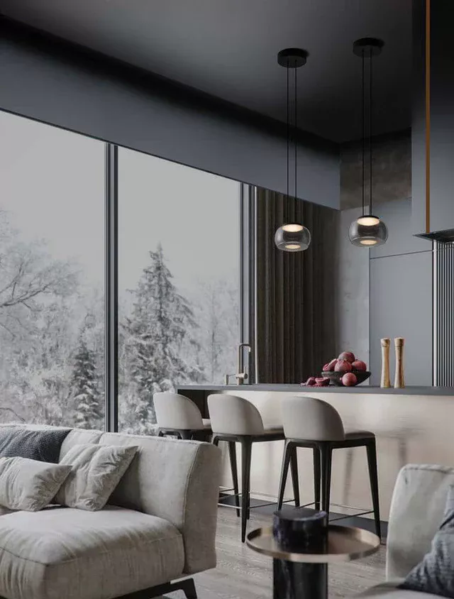 Die BIOS Pendelleuchte kombiniert matt schwarzes Metall mit elegantem Rauchglas und schafft eine moderne, stilvolle Beleuchtung für Wohn- und Essbereiche. Das schlanke, zeitlose Design fügt sich harmonisch in moderne wie klassische Einrichtungen ein.