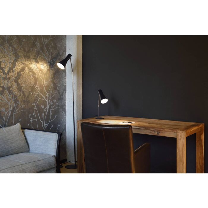 Stehlampe Petrus Schwarz, Chrom, Schirm Chintz Anthrazit