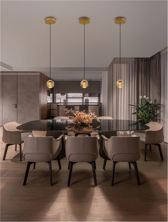 Suspension LED Apnea – Élégance graphique et lumière chaleureuse La suspension Apnea de Nova Luce marie avec finesse des matériaux
