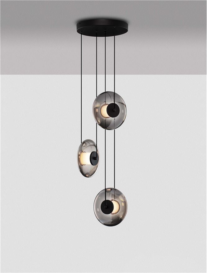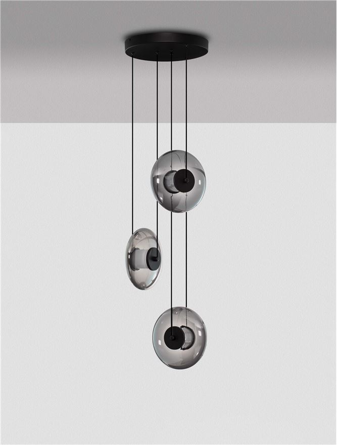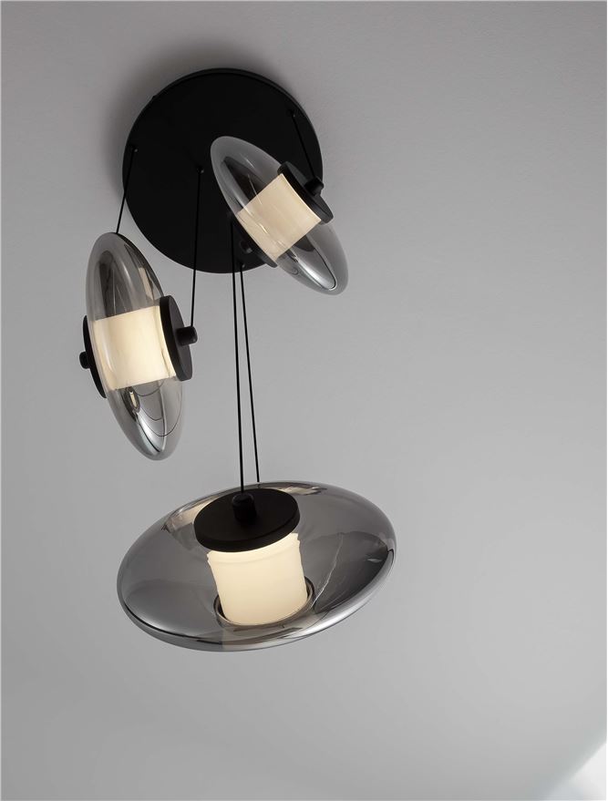 La suspension Skia de Nova Luce allie élégance et modernité. Son design décoratif et la combinaison raffinée du noir et du verre transparent en font une pièce maîtresse dans tout intérieur contemporain.